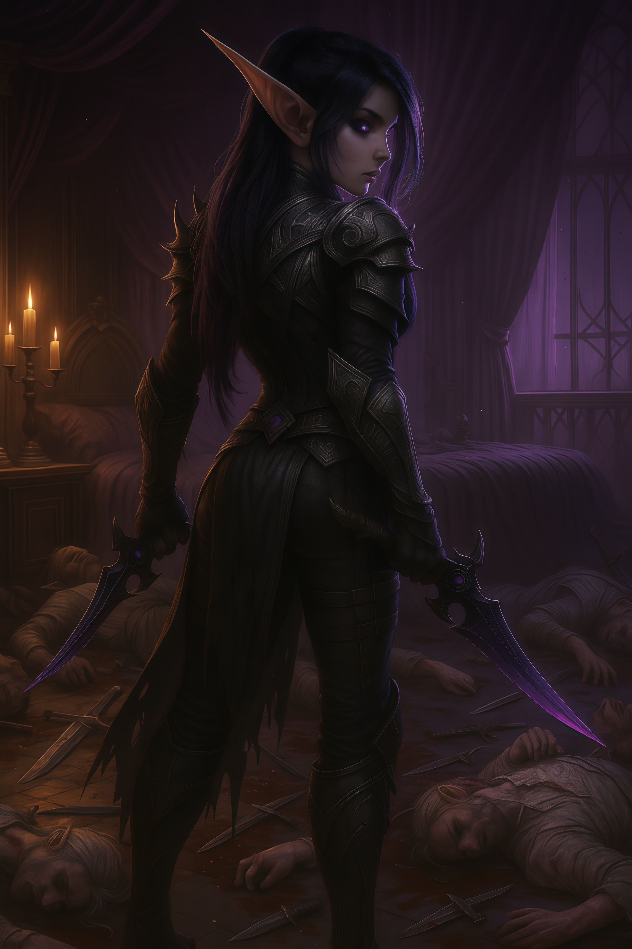 Лиадрин нахмурилась, рассматривая тела паладинов, убитых во время сна. Но не успела она ничего сказать, как вдруг услышала звук в соседних комнатах и поспешила туда. В одной из комнат были разбойники, которые убили еще часть паладинов. А потом она увидела ее. Темную эльфийку бездны. Ее взгляд встретился с ее. Лиадрин на секунду замерла, не сводя взгляда с темной эльфийки, чувствуя, как ярость заполоняет ее, а потом с глухим рыком она бросилась на нее в атаку. Эльфийка бросила что-то на пол и комната мгновенно погрузилась в дым, лишая возможности что-либо видеть. Лиадрин подавила желание кашлять и старалось идти вперед, вслепую на шорохи, доносящиеся из дымной комнаты, но когда дымное облако рассеялось разбойников уже не было.