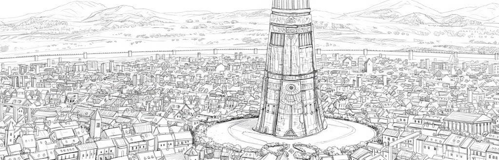 Город был огромен. Не просто большой — он был колоссален. Гигантская, идеально круглая стена, такая высокая, что облака цеплялись за её зубцы, опоясывала, казалось, половину видимого мира. А в самом центре, пронзая небеса, стояла башня Вавилон. Она уходила в самую высь, теряясь в голубой дымке, и казалась не творением рук человеческих, а иглой, которой боги пришпилили землю к небу.